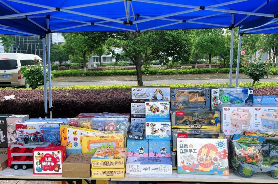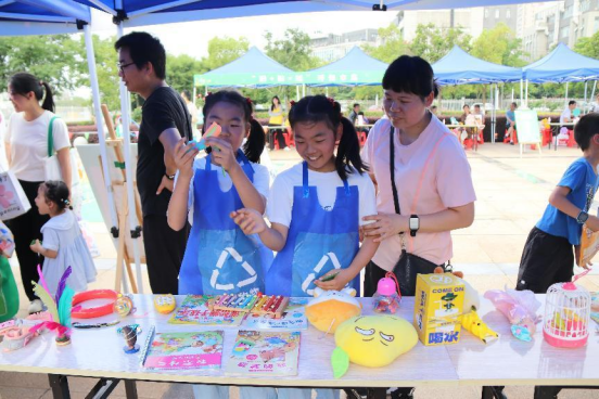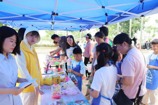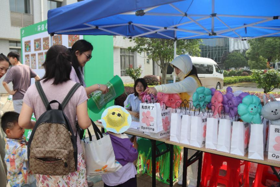 最后是“舊+舊=新”環(huán)保市集活動。在這個環(huán)節(jié)中,每組家庭提前準備了閑置的書本、玩具、生活用品等物品放置到我們的環(huán)保市集上。通過這個環(huán)節(jié),“舊物”變“新歡”。從“物物交換”的概念出發(fā),以閑置物品的免費交換,促進了大朋友與小朋友之間的互動。