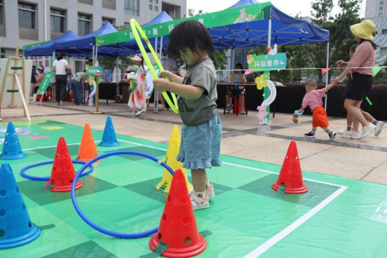 接下來的環(huán)?;犹魬?zhàn)游戲環(huán)節(jié)把活動推向了高潮。垃圾分類套圈圈、垃圾分類飛行棋、垃圾分類大比拼三個項目不僅讓孩子們玩得盡興,也增強了親子之間的互動和配合。
