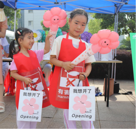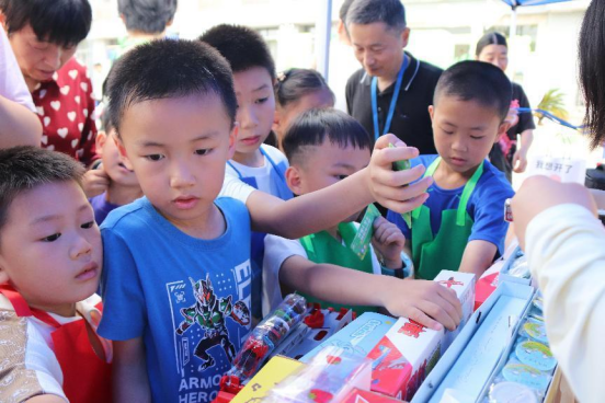 上午八點半,家長和孩子們陸續(xù)來到國旗廣場,在簽到處簽到后領(lǐng)取環(huán)保套裝、定制小圍裙以及小玩具作為見面禮。